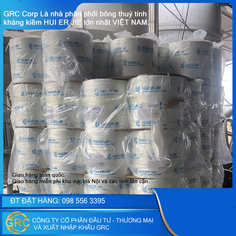 Hiên tại GRC Corp là nhà phân phối sợi thủy tinh kháng kiềm của HUIERJIE lớn nhất tại Việt Nam. Đặc biệt là mã sản phẩm ARG Spray Roving ARC13-2700H ZrO2 ≥16.7% chuyên sử dụng sản xuất bê tông GRC (GFRC). Trên cơ sở nghiên cứu, thí nghiệm và kinh nghiệm thực tế chúng tôi xin lưu ý sợi thủy tinh kháng kiềm chuyên dùng sản xuất GRC phải đạt hàm lượng Zirconium (ZrO2) tối thiểu trên 16%. Nếu không chất lượng lâu dài của công trình sẽ bị ảnh hưởng lớn.