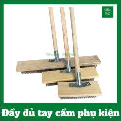 – Tay cầm cán gỗ 115cm bọc màng co vân gỗ màu sữa, chổi , nối thép kết nối chổi với cán, 2 ốc chữ Y để vặn vào 2 lỗ trên bản gỗ của chổi.