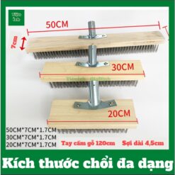 – Chổi 50cm chiều rộng chổi là 50cm bản gỗ dày 1.7cm rộng 7cm, cán chổi gỗ keo vàng đường kính 3cm dài 115cm được bọ màng co nhiệt vân gỗ chắc chắn và thẩm mỹ